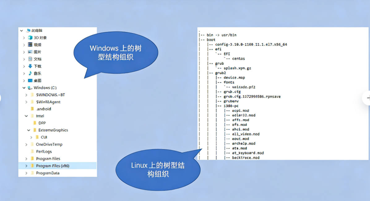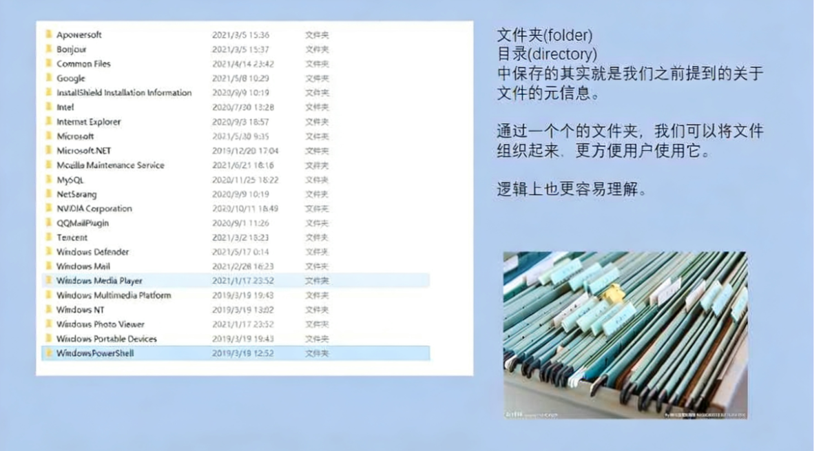 同时,随着文件越来越多,对文件的系统管理也被提上了⽇程,如何进行文件的组织呢,⼀种合乎自然的想法出现了,就是按照层级结构进⾏组织⸺也就是我们数据结构中学习过的树形结构。这样, ⼀种专门用来存放管理信息的特殊⽂件诞⽣了,也就是我们平时所谓⽂件夹(folder)或者⽬录 (directory)的概念。