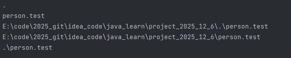 .\是 "当前目录" 的占位符(在文件路径中,.代表当前所在目录),所以project_2025_12_6\.\person.test等价于直接写project_2025_12_6\person.test。 - 第二个路径是简化后的写法,省略了 "当前目录" 的占位符,直接指向目标文件。