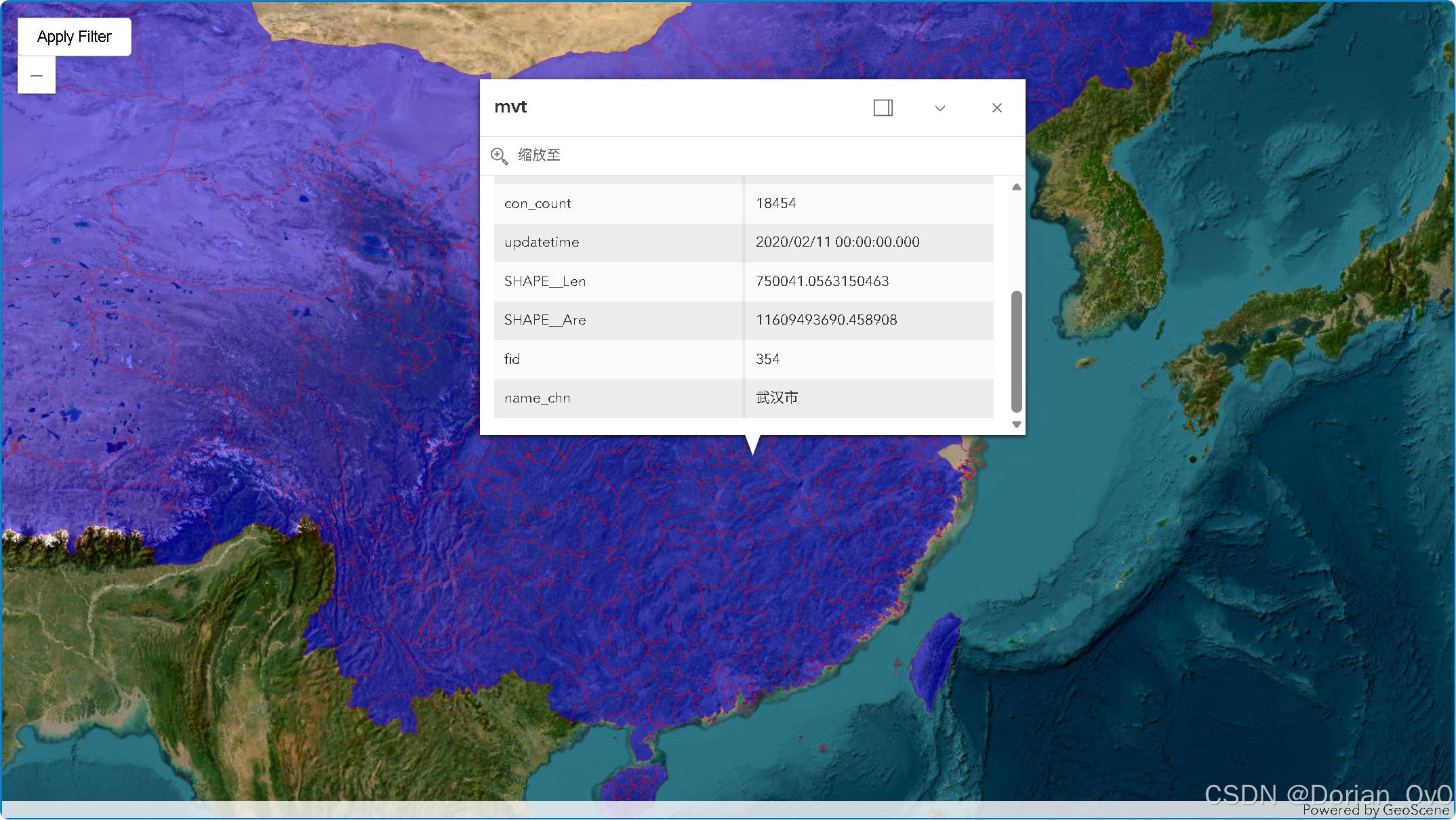 这个矢量瓦片支持点击显示弹框,CQL语句查询等功能,而且加载非常快,不会像GeoJSON那样。
