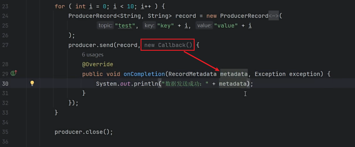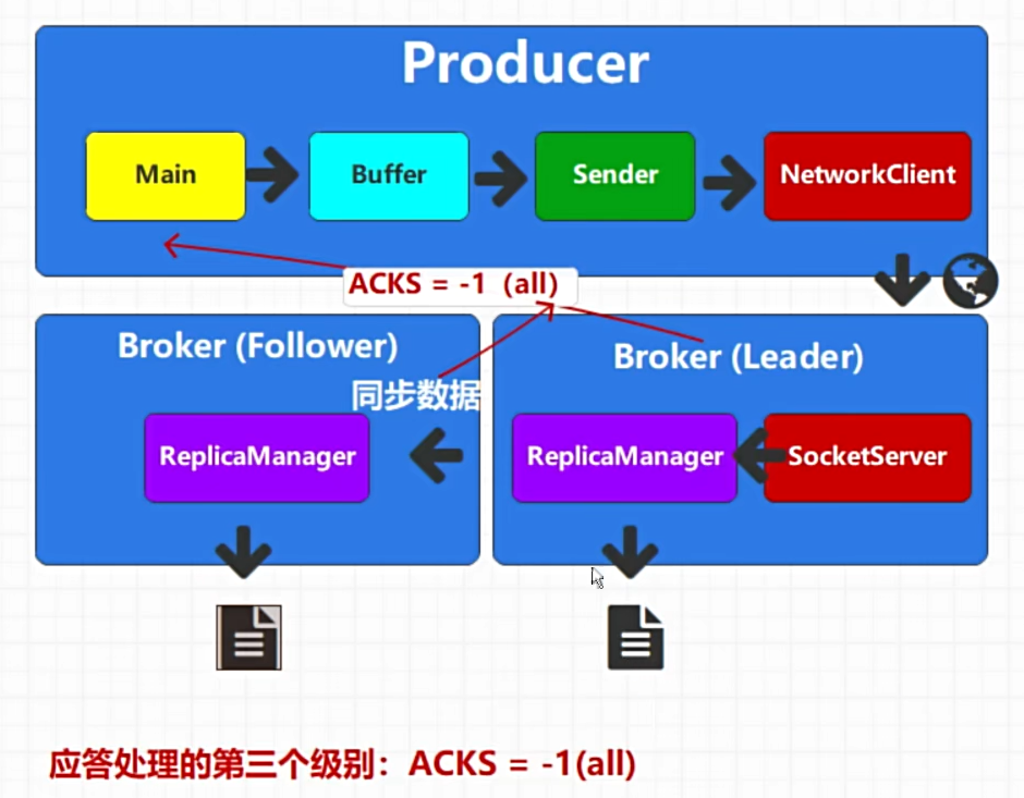 - Kafka服务器收到数据的时候,进行应答处理,执行callback;
