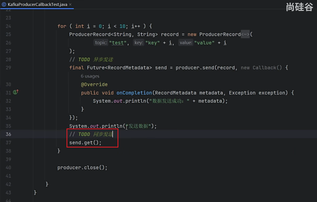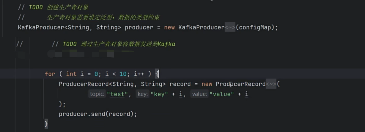 - 创建生产者对象,创建数据对象,通过生产者对象将数据发送给Kafka,发完数据关闭Kafka