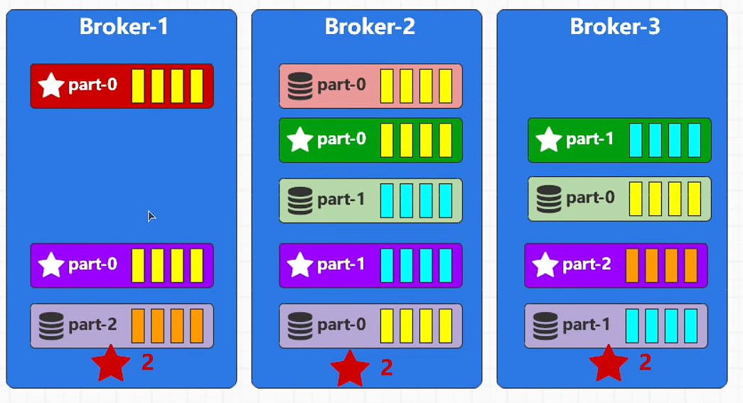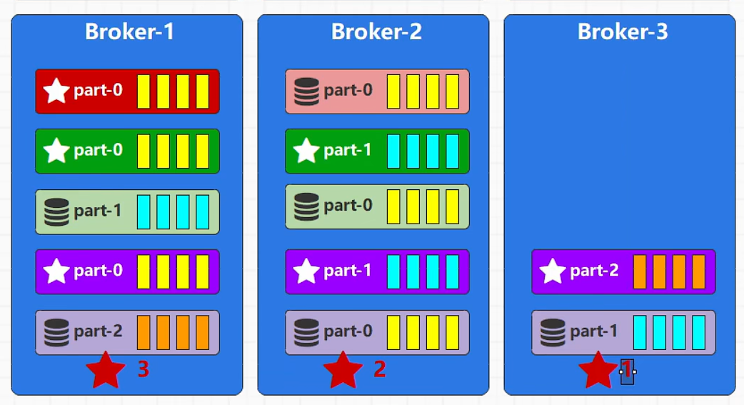 - leader节点分布均匀,将副本partition分散在其他的broker中