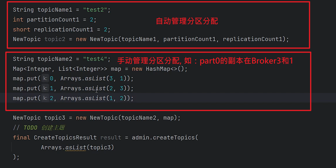 - 手动分配副本(新手不推荐),其中放在前面的3就是leader,后面的1就是副本