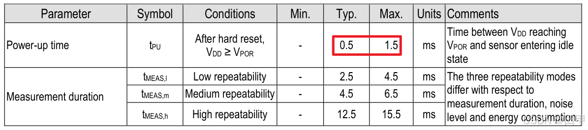 MCU用命令触发采样后,需要一小会等待,才能从SHT30获取数据。