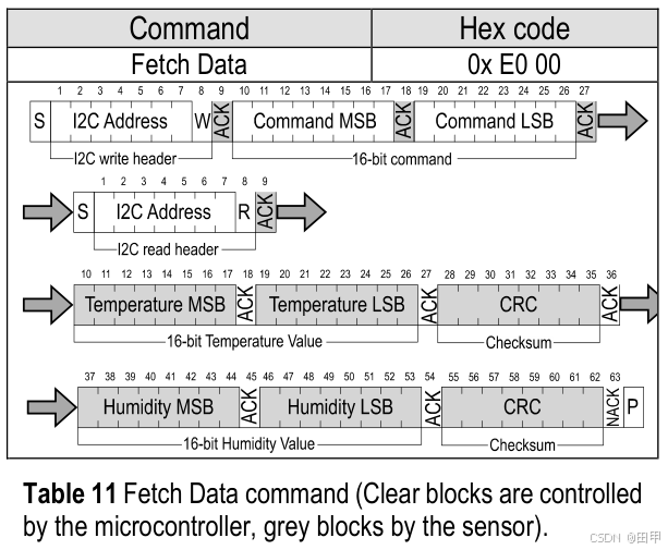 先返回温度数据+CRC再返回湿度数据+CRC。