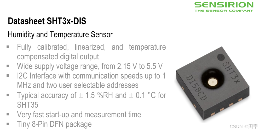 I2C通信,典型温度精度0.1度,湿度1.5%。