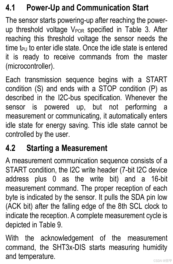 SHT30上电后等待一段时间才能接收指令,没收到指令就进idle,是为了降低功耗。
