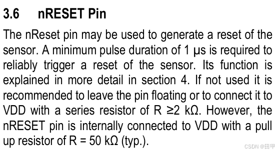 芯片支持reset引脚复位和i2c总线指令复位,后者可以单独发送复位指令或者通用复位。