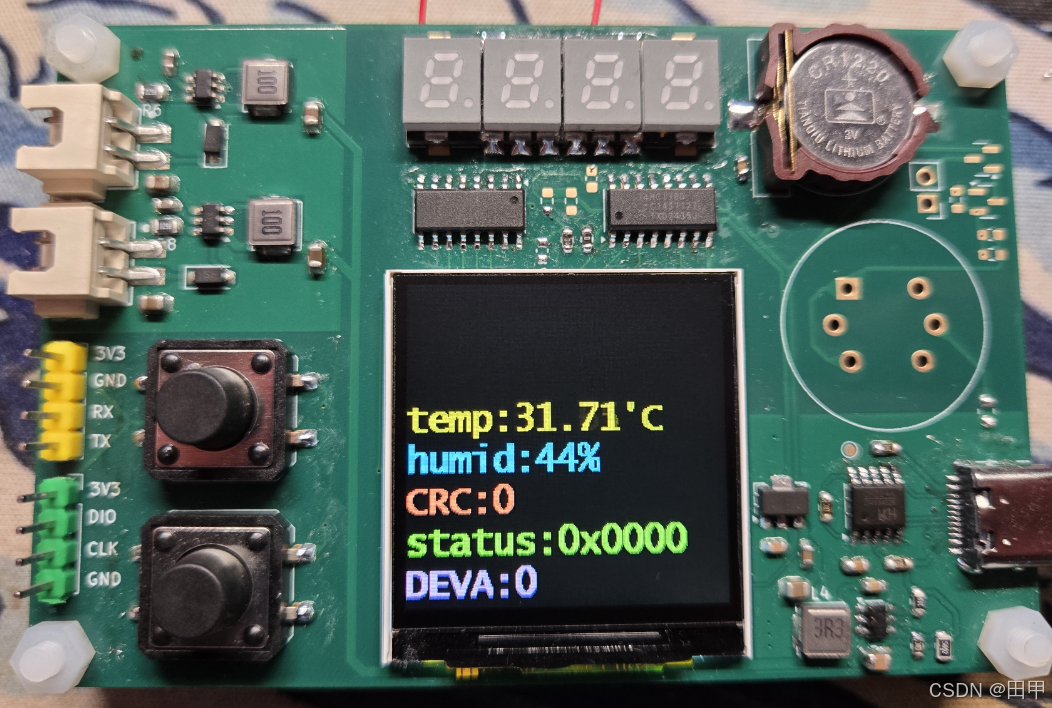 使用1.54寸TFT彩屏打印采集到的温湿度数据和芯片状态