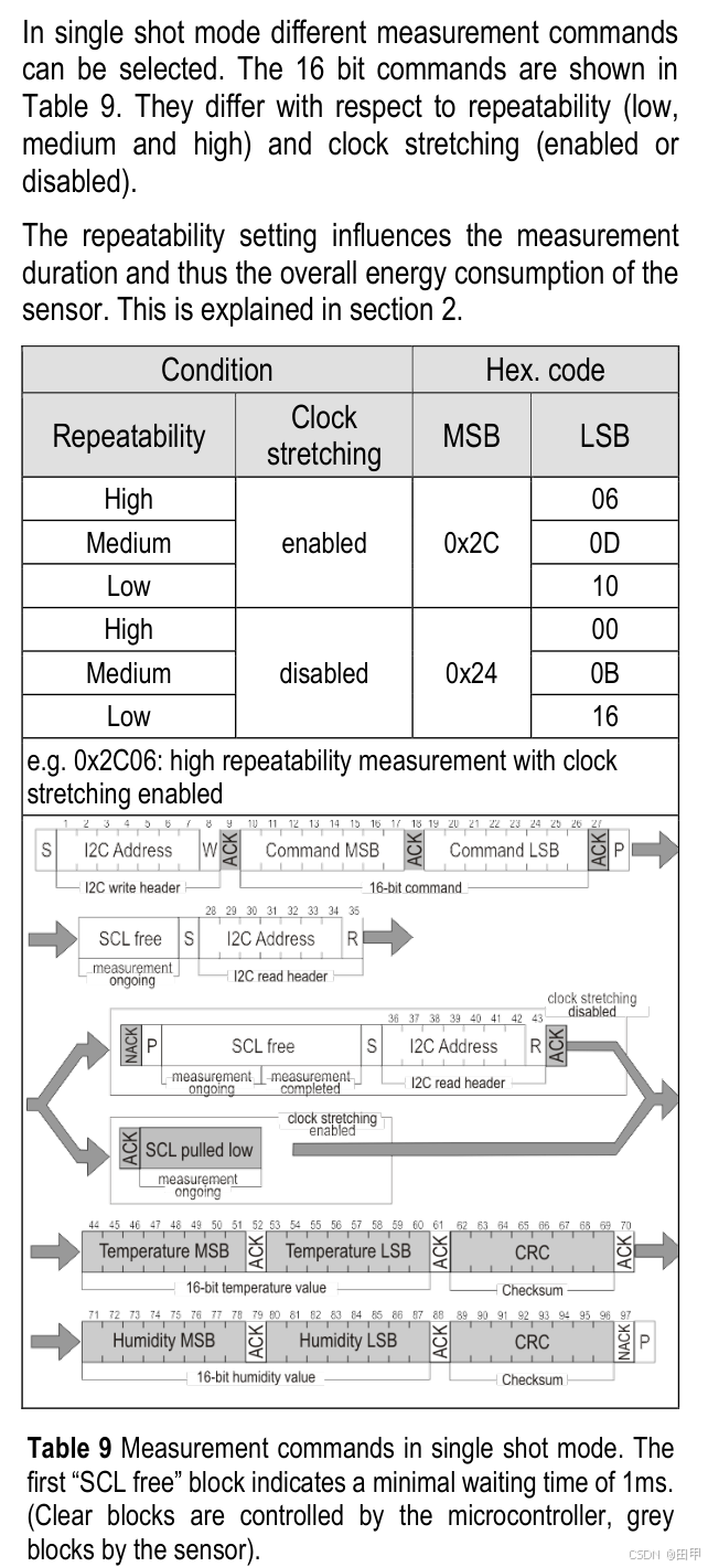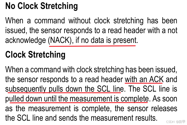 不开启时钟延伸则发送读请求,SHT30回复NACK直到采集完毕。
