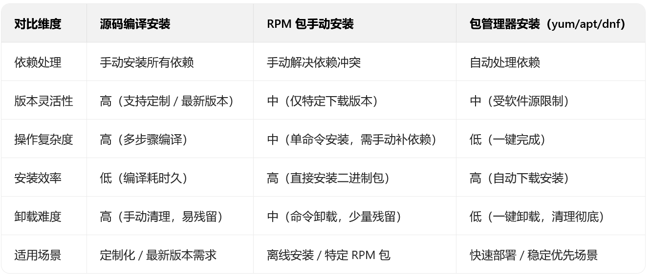 我们的yum/apt使用的是包管理安装的方法。