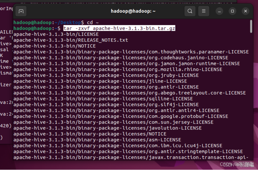 tar -zxvf apache-hive-3.1.3-bin.tar.gz