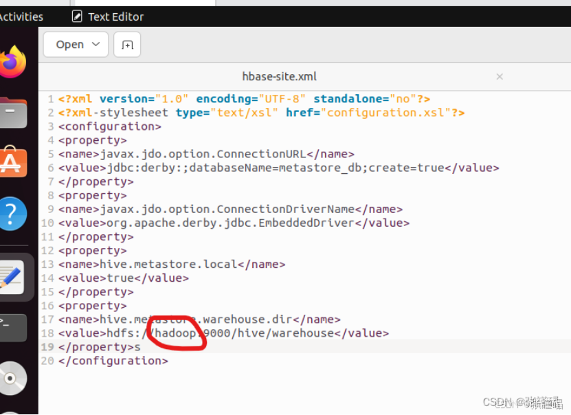 在**/usr/local/hive-3.1.3/conf/** 路径下新建 hive-site.xml 并编辑