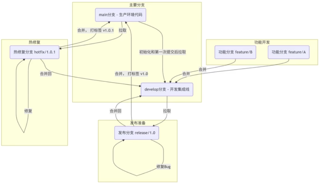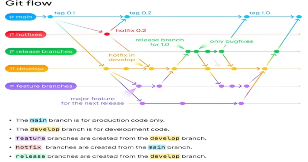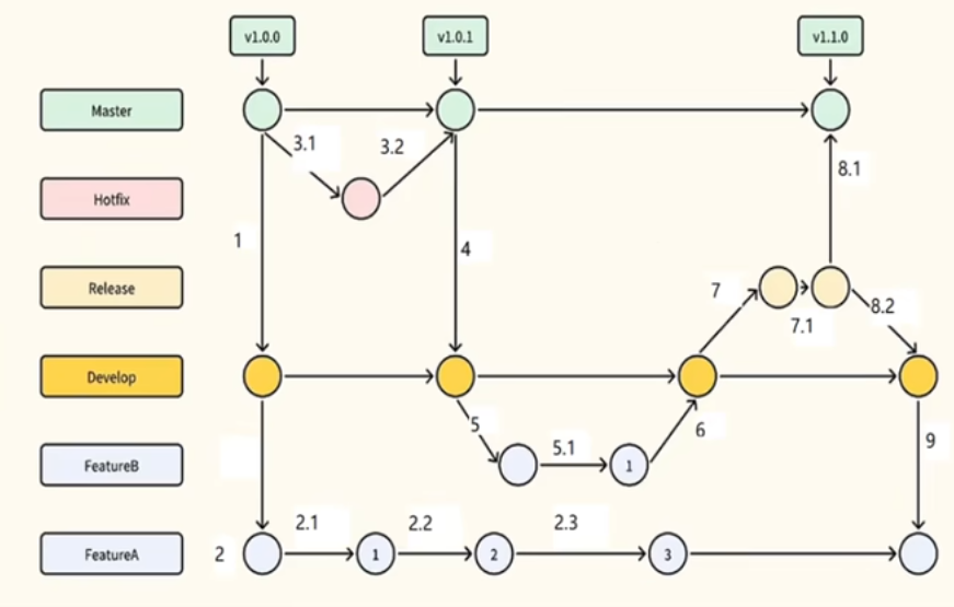 GitFlow的核心是利用严格的分支模型,为不同的开发任务分配独立的分支,使得开发过程更加结构化、井井有条。