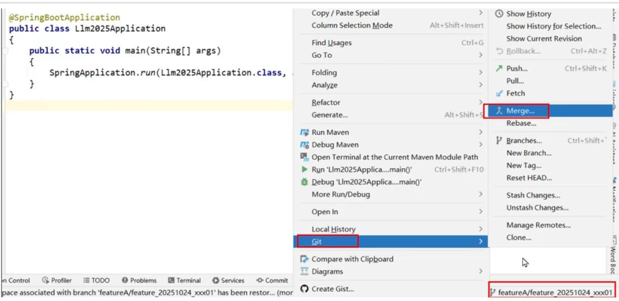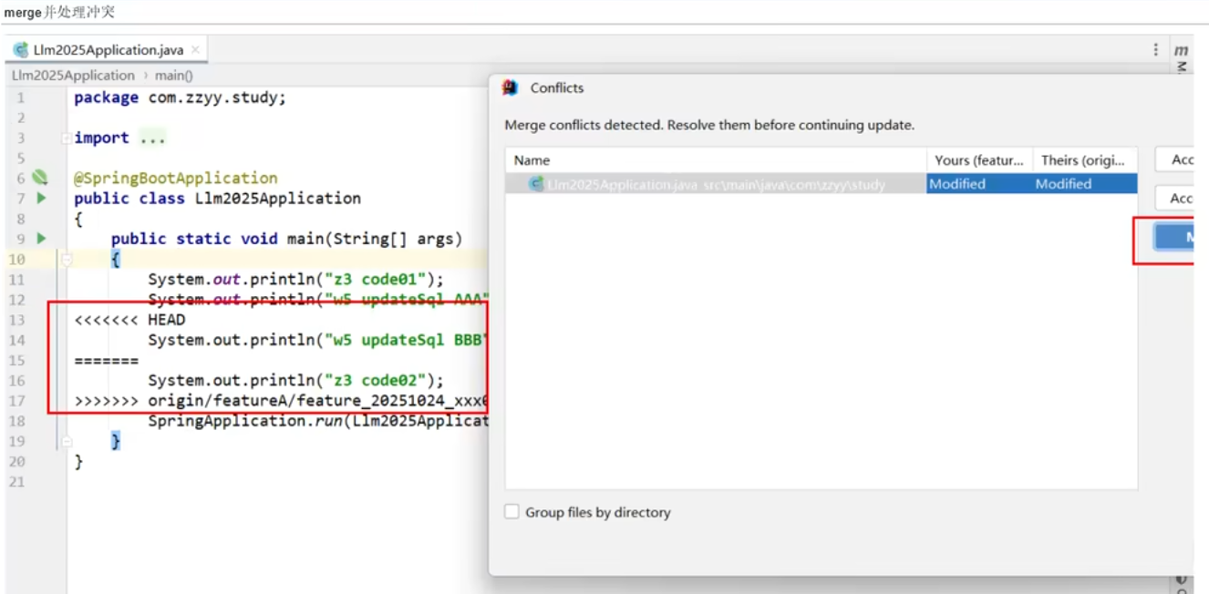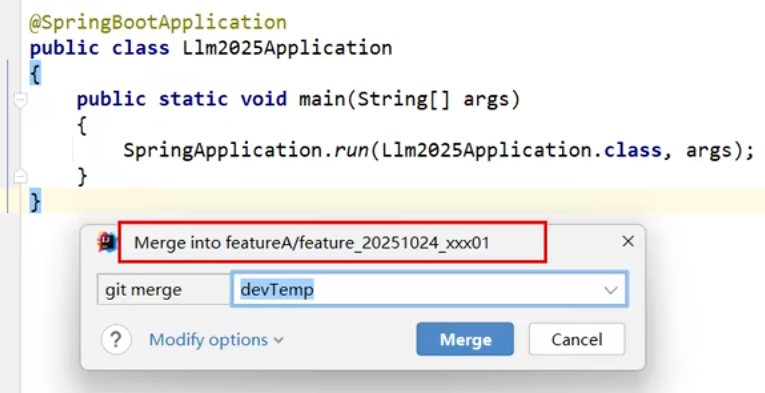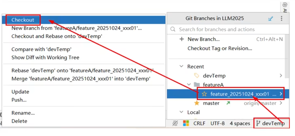 6.3.2.8 切换回feature分支并把devTemp分支内容合并进来,再删除devTemp分支