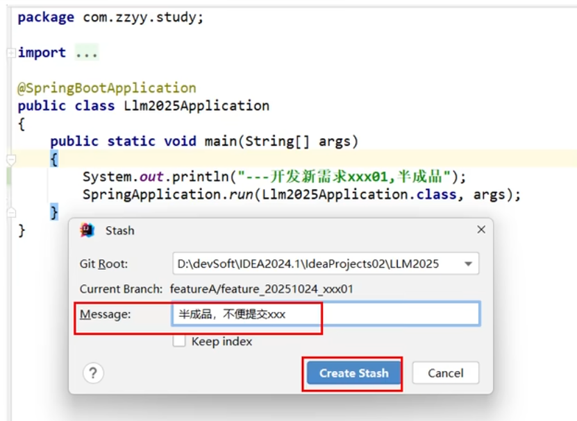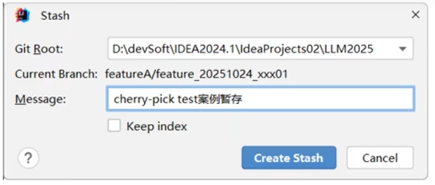 6.3.2.5 将当前代码暂存,Stash执行OK