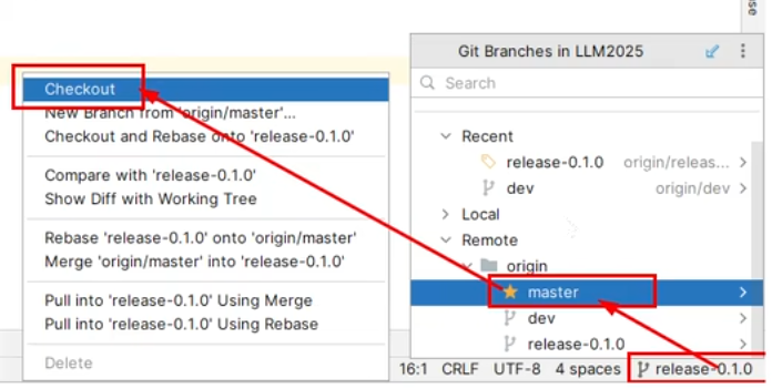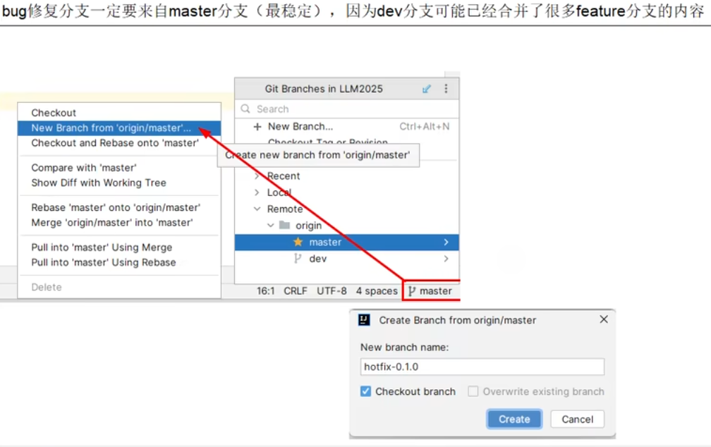 产品经理建立分支:自顶向下。在远程库建好分支后,开发人员本地拉取