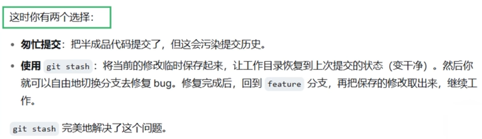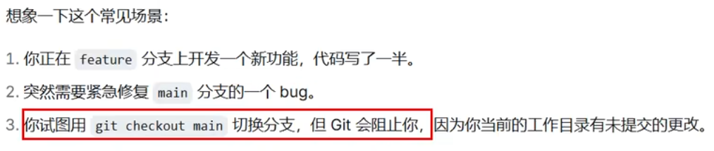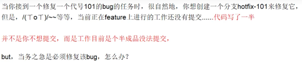 1 比如feature分支上正在开发,代码写了一半,突然生产报bug,收到报障