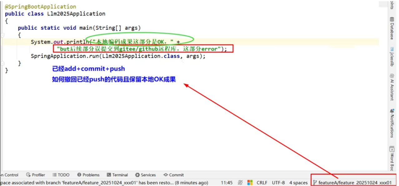保留正确的劳动成果,删除错误的隐患,处理后在本分支add-commit