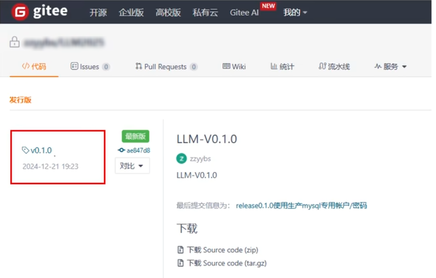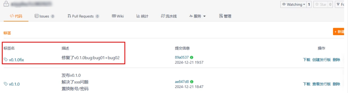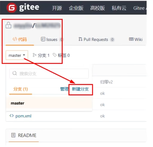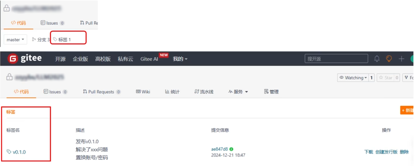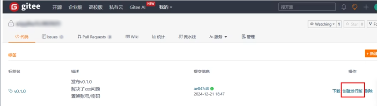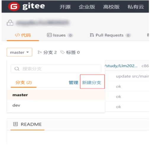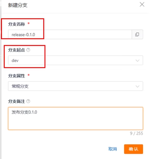 Gitee上新建发布分支release-0.1.0以dev作为分支起点