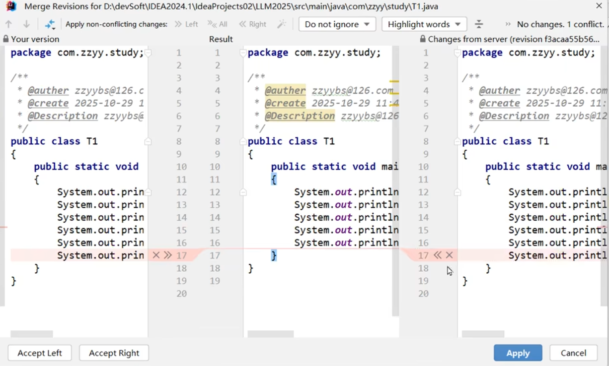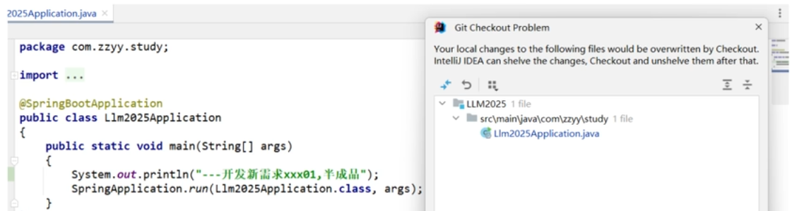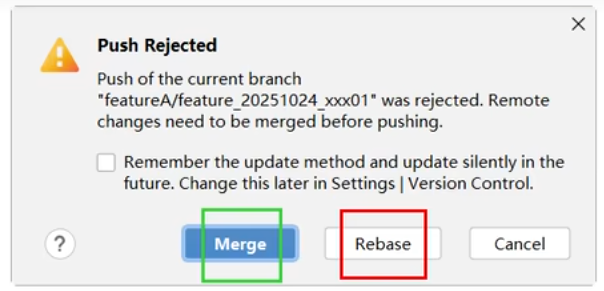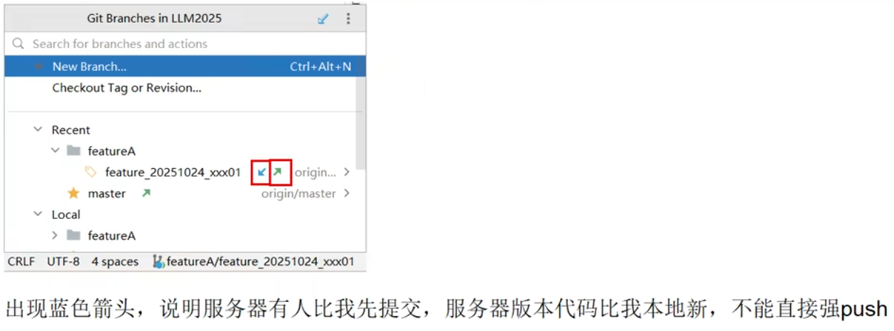远程服务器上,另一位开发张三提交了代码,远程比我新,但我不知情