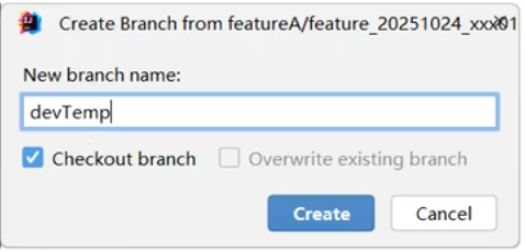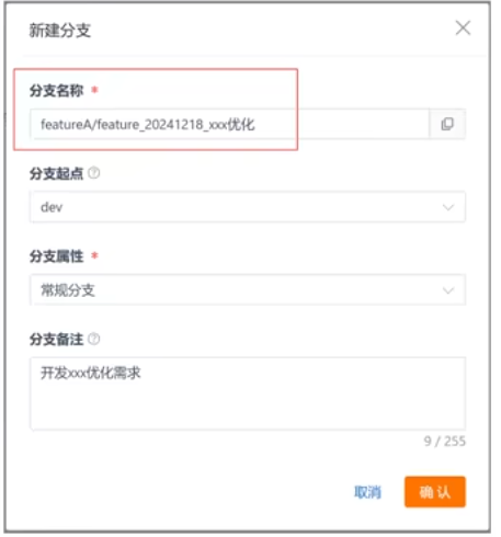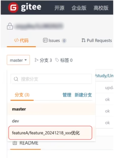 4.2.3.2.2 gitee上新建开发某个需求的featureA分支以dev作为分支起点
