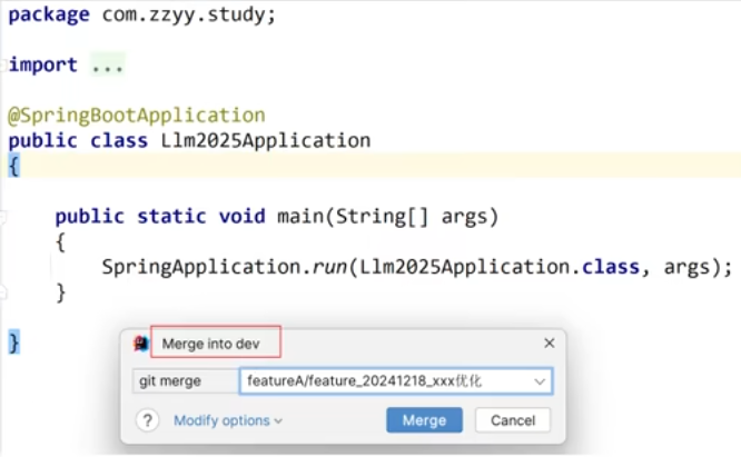 4.2.3.2.9 featureA上开发完成的需求要合并进dev分支上
