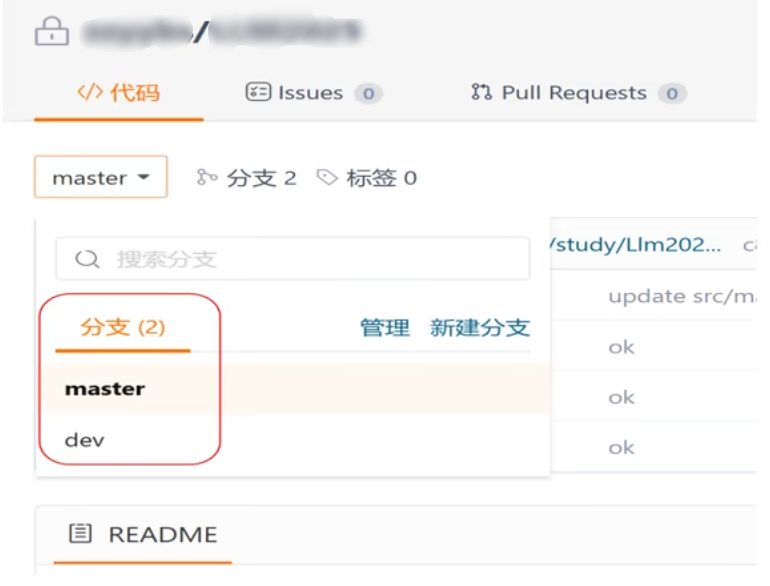 1 必定有一个master分支(公司主管已经弄好,现成的)