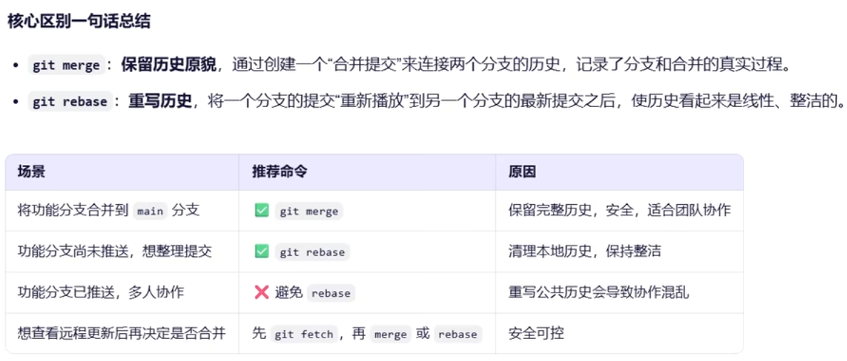 作用:git pull 实际上是 git fetch + git merge 的组合。如果你直接pull,可能会立即遇到合并冲突。而先fetch,你可以先审查更改,再决定何时merge,流程更可控。