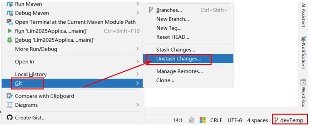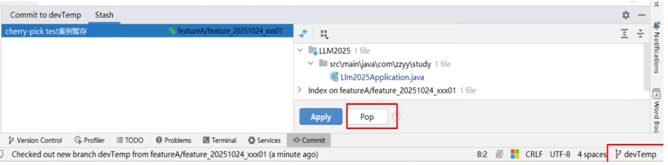 6.3.2.7 切换到devTemp临时分支后UnStash