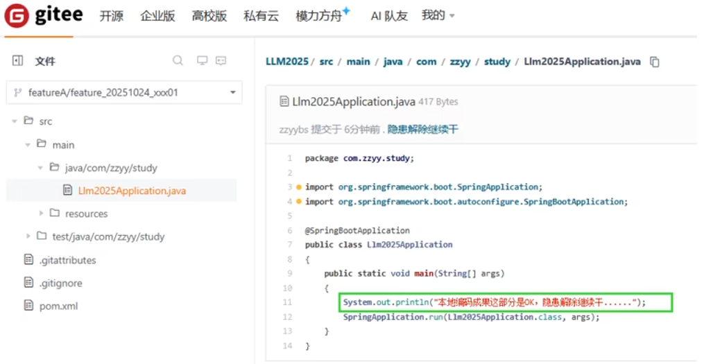 4.2.3.2.8 gitee上查看本地feature提交到远程feature情况