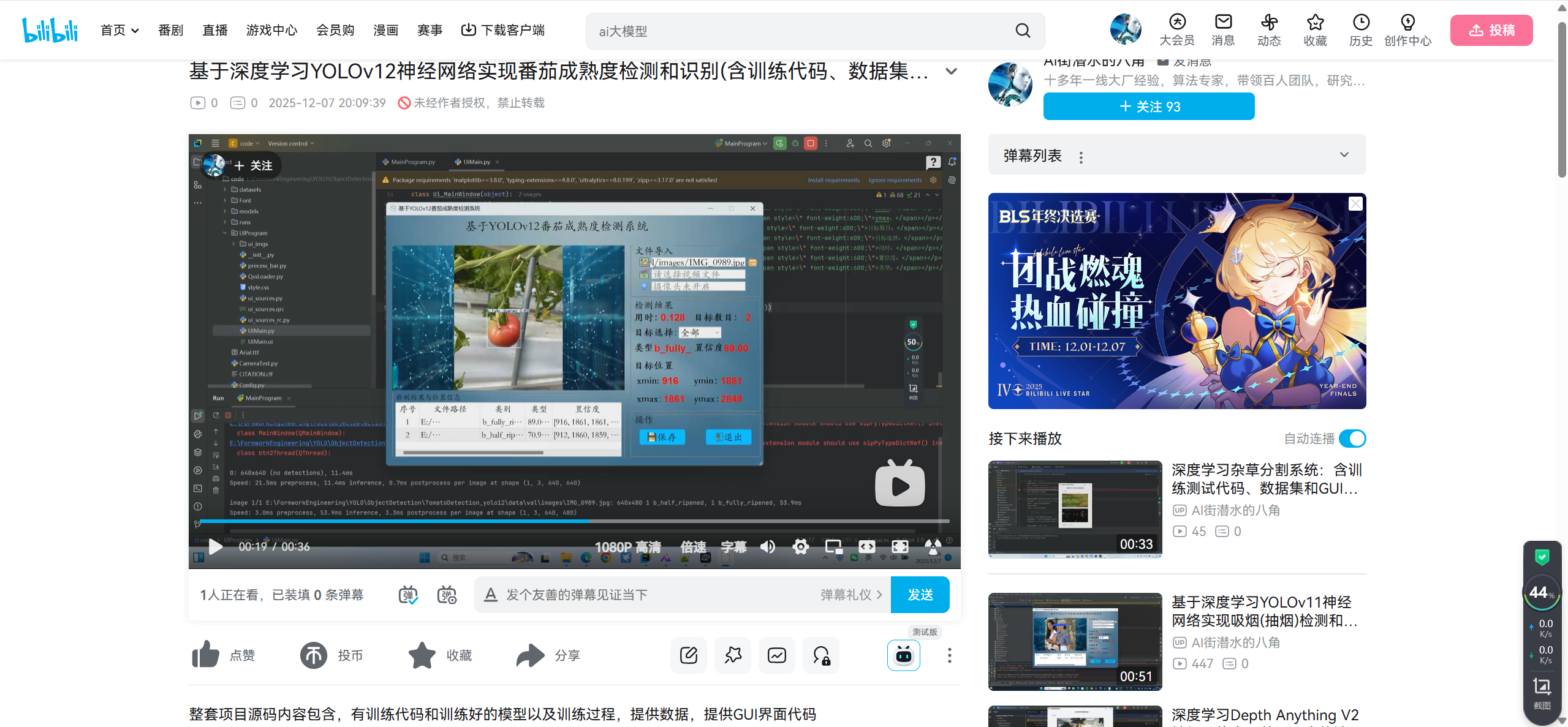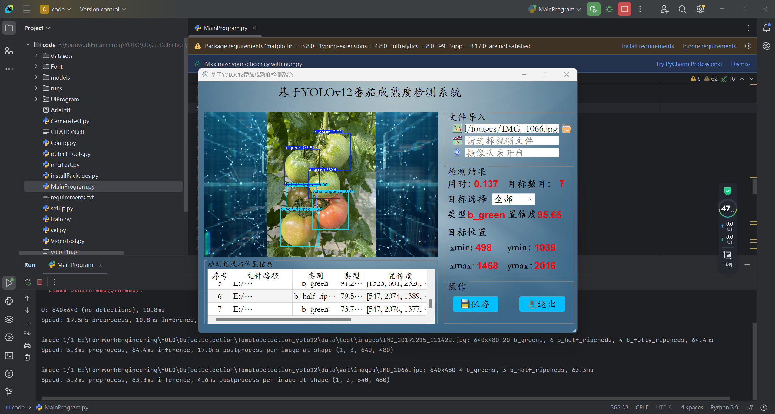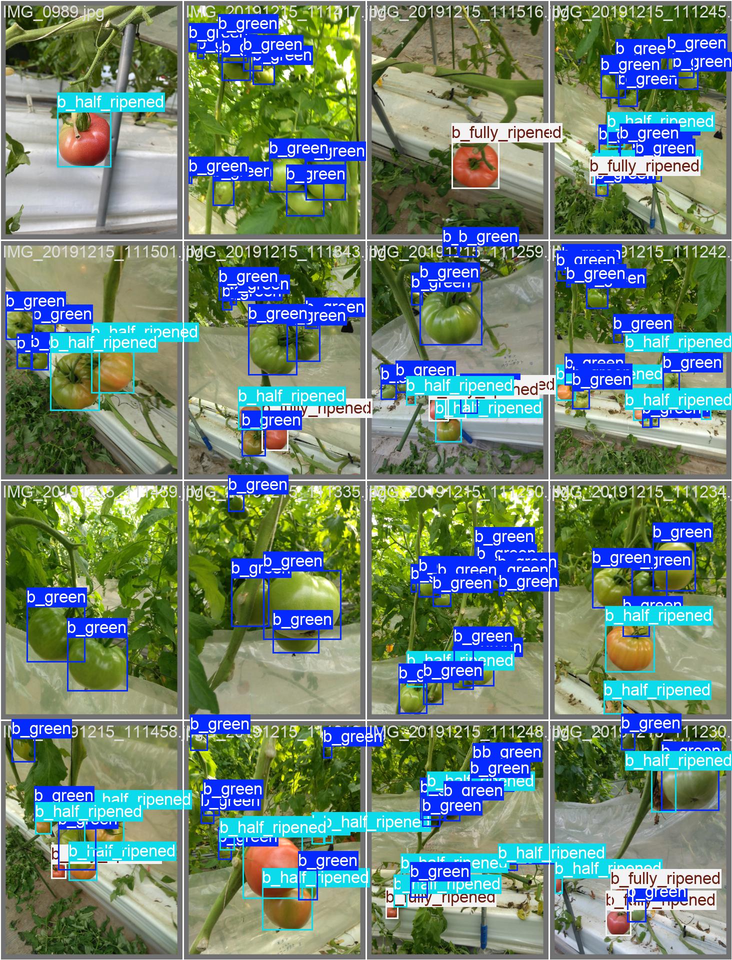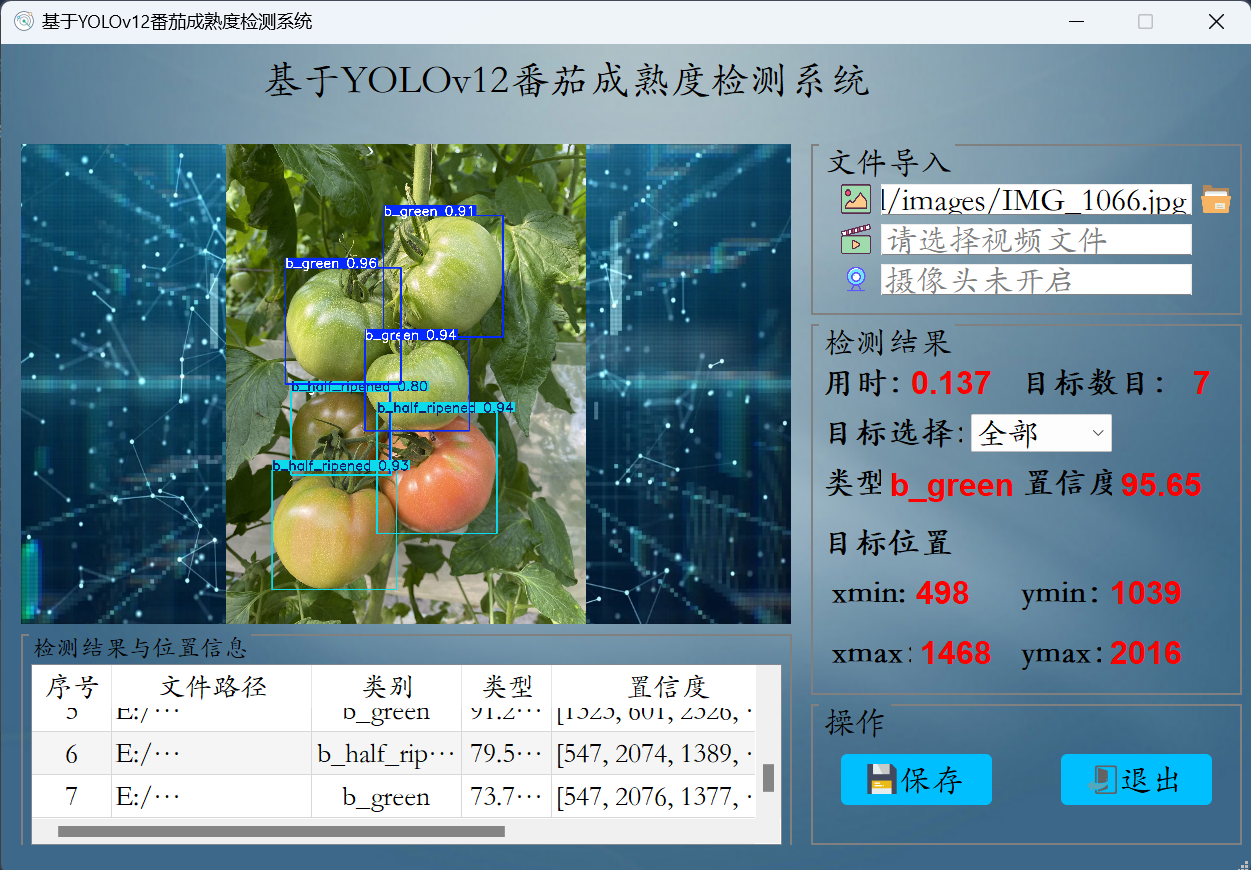基于深度学习YOLOv12神经网络实现番茄成熟度检测和识别,其能识别检测出3种番茄成熟度:names: ['b_green', 'b_half_ripened', 'b_fully_ripened']