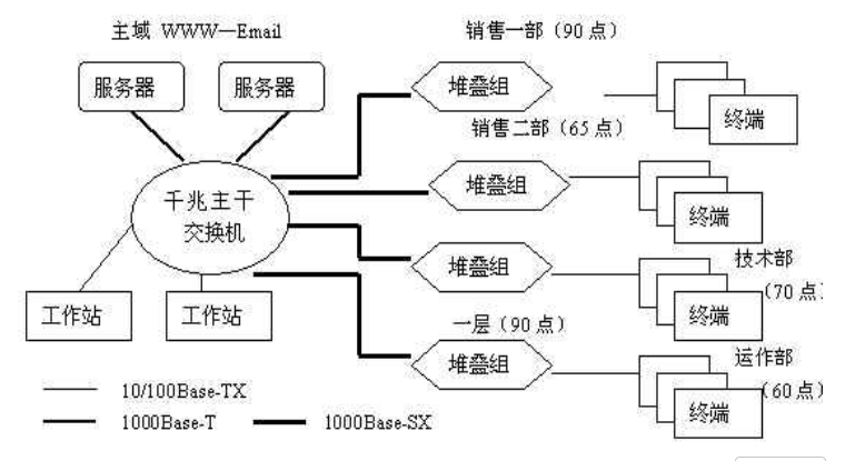 医院网:信息点密集的千兆局域网络,主干采用100兆快速交换式以太网