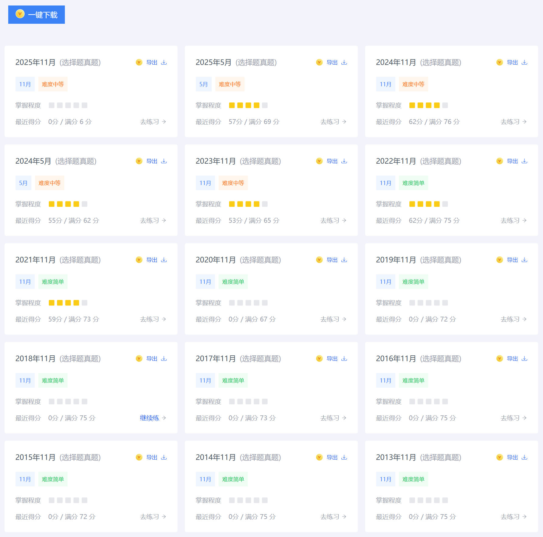 在考前最后几天保持手感时,按年份维度,直接一次刷一套: