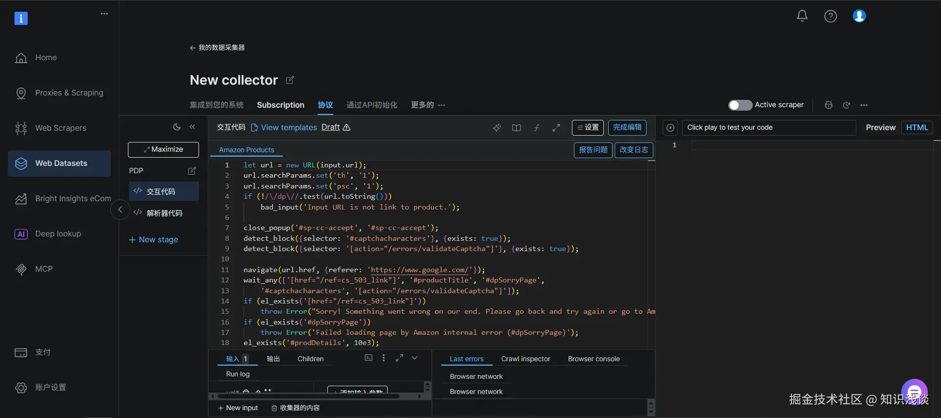 全可见、全可控 这是对 Web Scraper IDE 优秀基因的传承 。当AI生成的脚本在极端复杂场景下需要微调时,你依然可以一键"Open in IDE",进入我们熟悉的那个强大编码环境,进行手动优化,兼具AI的效率与代码级的极致控制。