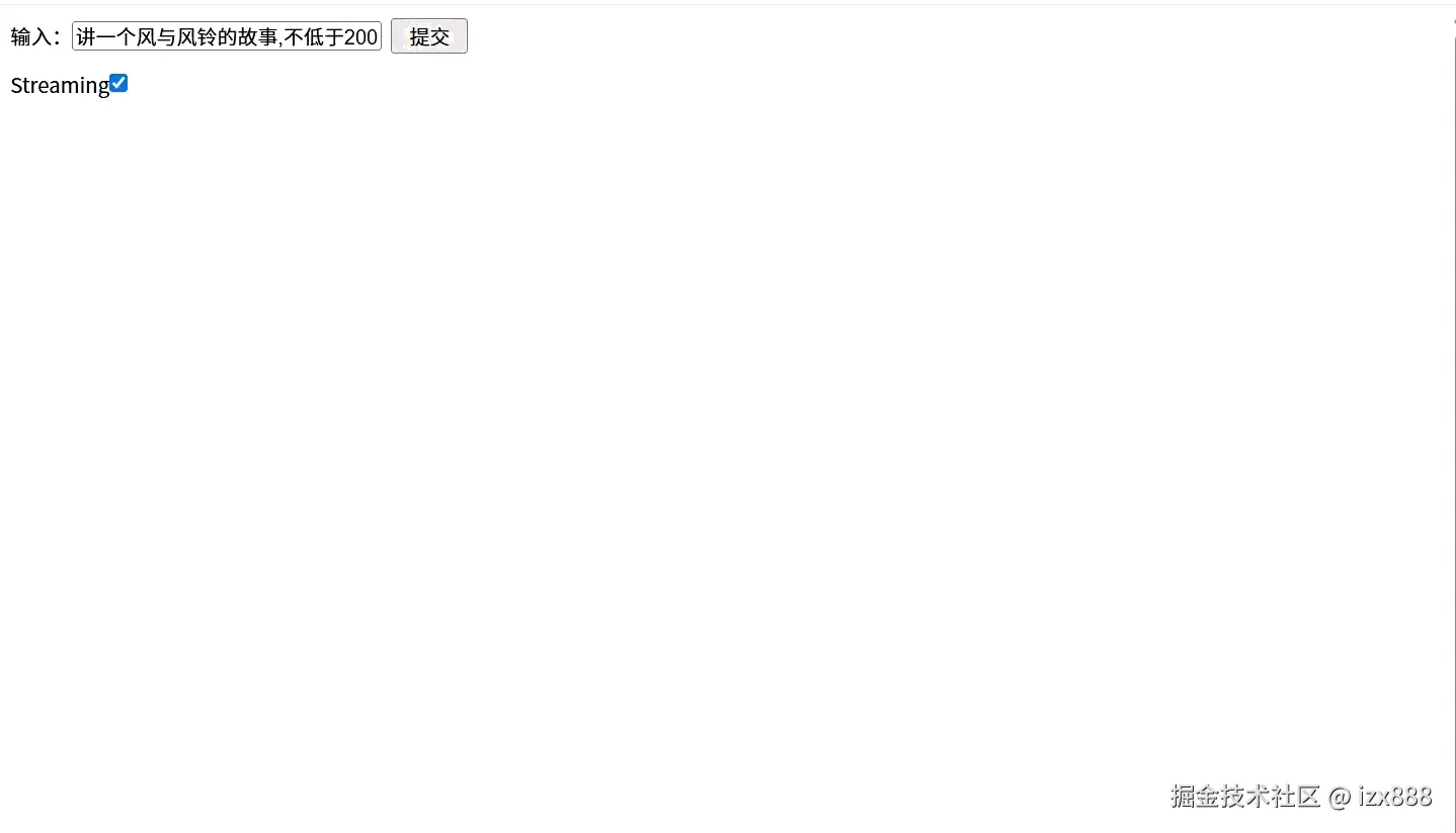而 流式输出(Streaming) 允许后端一边生成 token,一边向前端推送。前端则可以即时渲染,让用户感受到"正在思考"的动态过程,极大提升交互流畅度和心理预期。