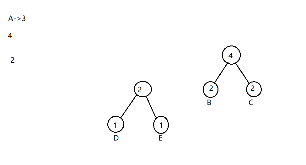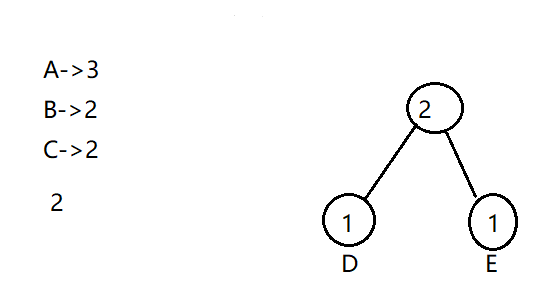 先选择D和E构建,此时D和E转化为一个整体节点为2。
