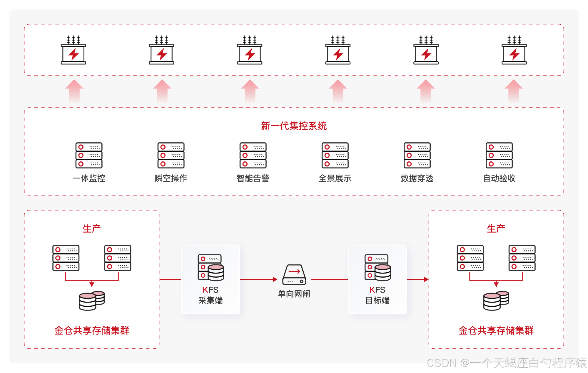 - 金仓KFS提供穿透隔离装置、跨网断点续传等冗余机制,支持生产到管理区间秒级数据同步
