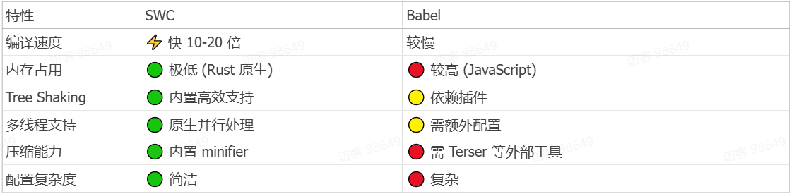 SWC 是用 Rust 语言编写的,其性能优势非常明显。它利用了 Rust 语言的高效性和底层优化机制,在对代码进行转换时速度极快。例如,在将 ES6 + 代码转换为 ES5 兼容代码的常见任务中,SWC 通常能够比 Babel 更快地完成转换操作,尤其是在处理大型项目的大量代码时,这种性能差异更加显著。