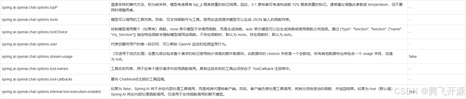 前缀 spring.ai.openai.chat 是用于配置 OpenAI 聊天模型实现的属性前缀。