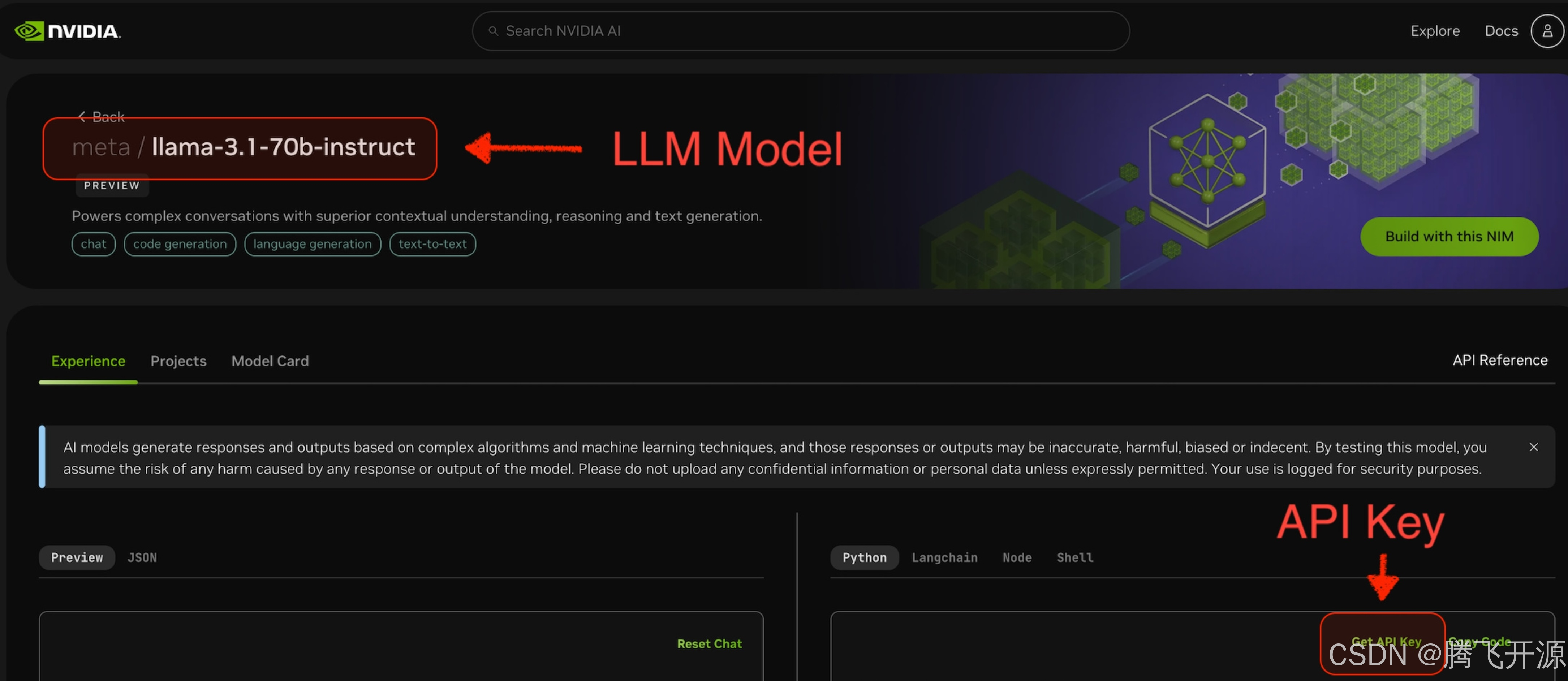 选择要使用的 LLM 模型。例如,下图中的 meta/llama-3.1-70b-instruct。