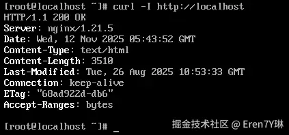 返回HTTP/1.1 200 OK状态码,确认Web服务正常运行。