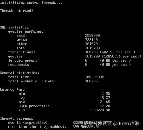 sysbench oltp_read_write --table-size=1000000 --mysql-user=root --threads=8 --time=300 prepare