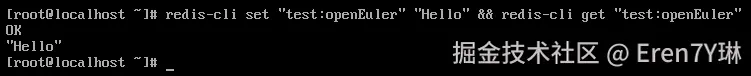 redis-cli set "test:openEuler" "Hello" && redis-cli get "test:openEuler"