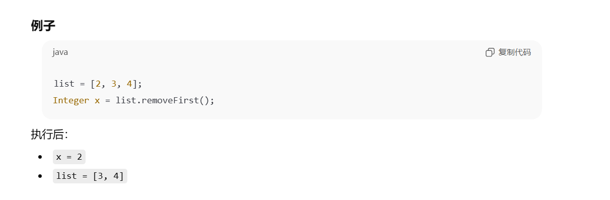list 这个链表的头部取出并删除第一个元素