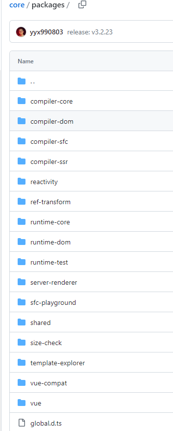 vue.js 3 将不同模板拆分到了 packages 目录下的子目录中,每个模块可以看作一个独立的项目,具有自己的类型定义、api、测试用例等。