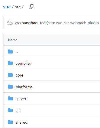 vue.js 2 将所有源代码都写在 src 目录下,按照不同功能划分成多个文件夹,compiler(模板编译相关)、core(核心运行时)