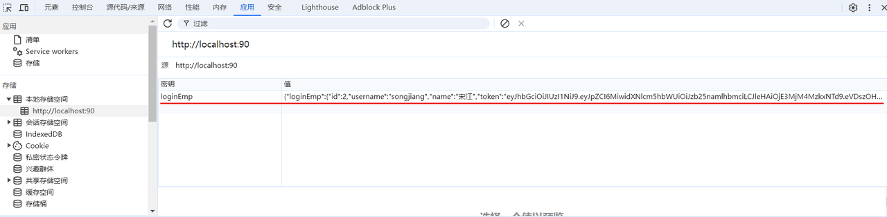 接下来前端程序当中接收到令牌之后,就需要将这个令牌++存储++起来。这个存储可以存储在 cookie 当中,也可以存储在其他的存储空间(比如:localStorage)当中。