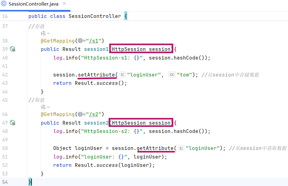 (2)方案二:Session(服务端会话跟踪技术):数据存储在储在服务端