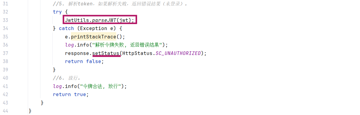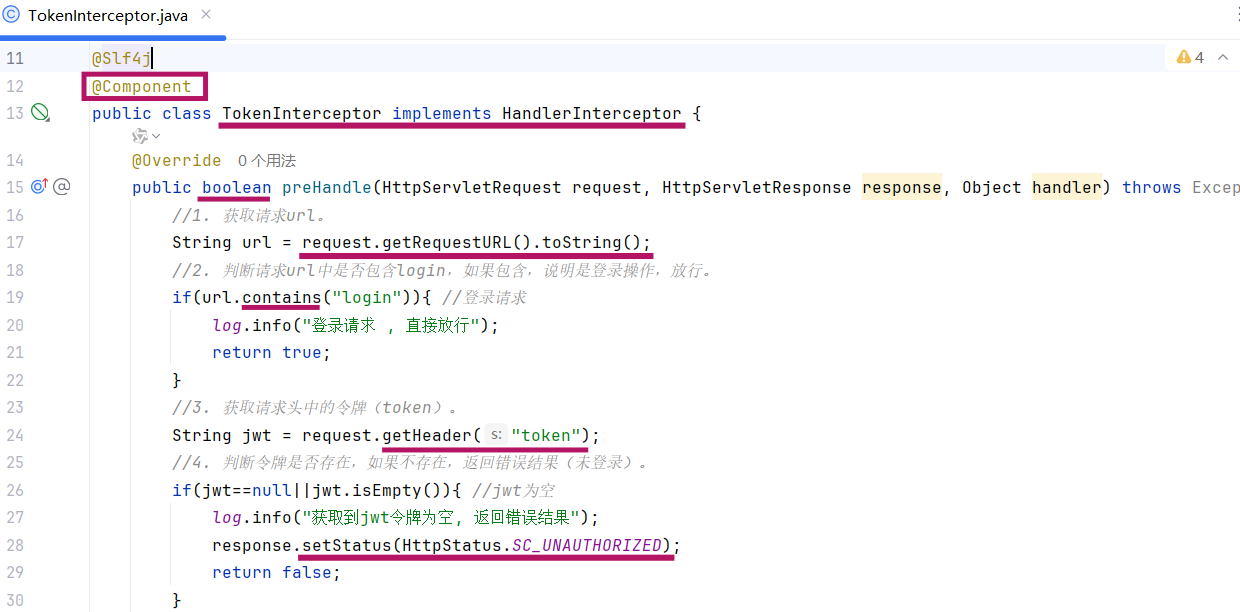 2.令牌校验Interceptor(preHandler返回值类型为布尔)